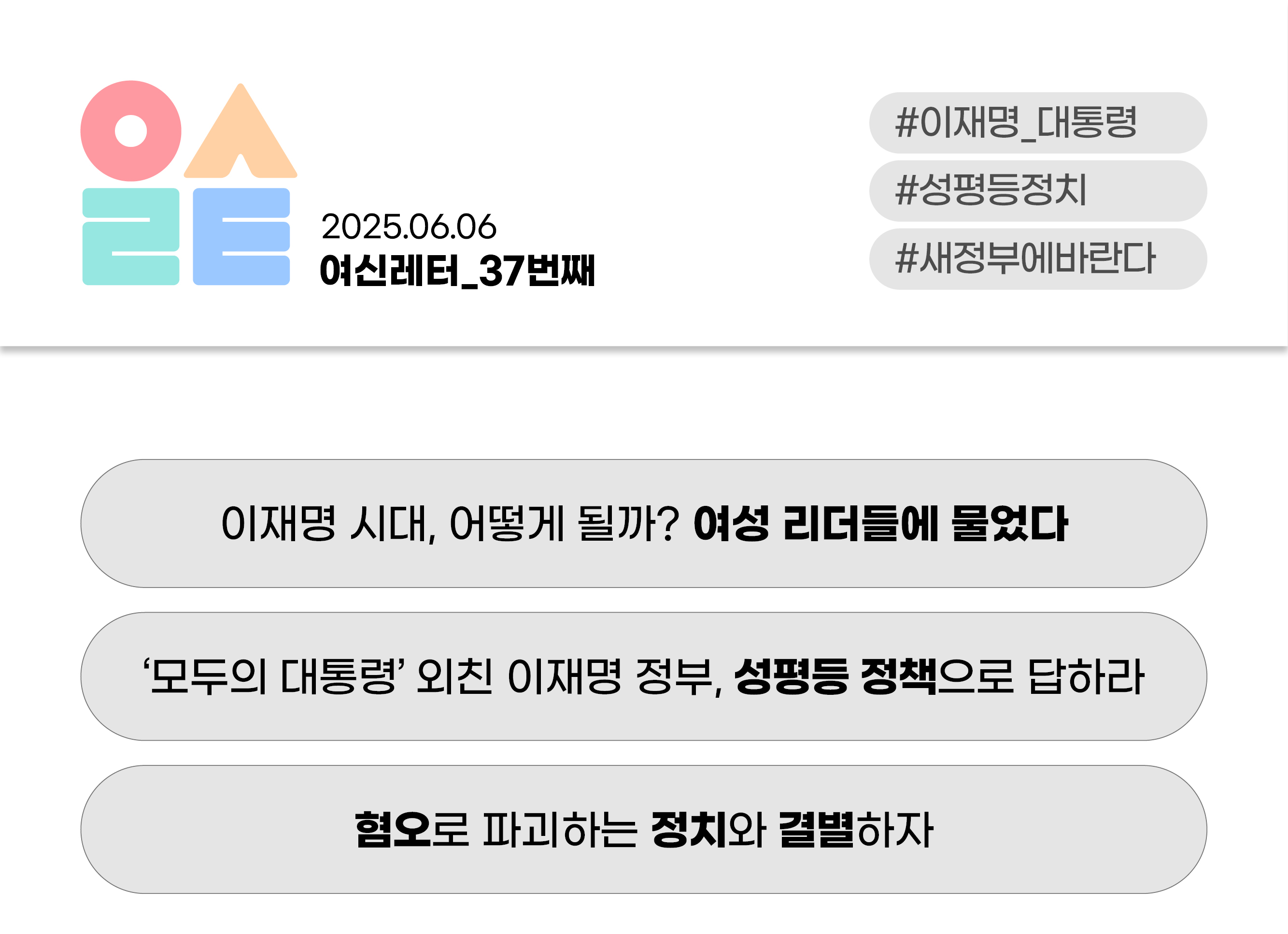 ์ โ์ฌ์ฑ๋ง์ ๋ฌธ์ โ๊ฐ ์๋๋ผ ๋ฏผ์ฃผ์ฃผ์์ ๊ทผ๊ฐ์ด๋ฉฐ, ๋ชจ๋ ์ ์ฑ