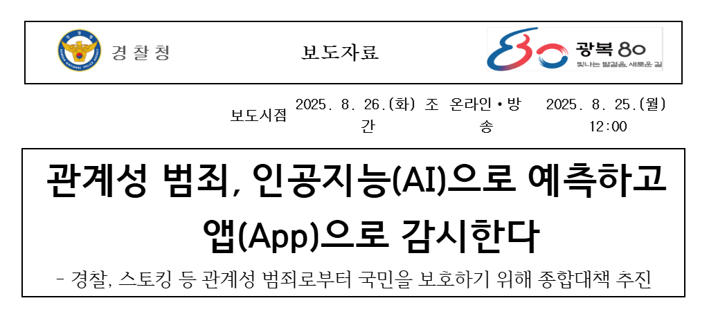 ์ด๋ฐ ๊ฐ์ด๋ฐ ๊ฒฝ์ฐฐ์ฒญ์ด ์ง๋ 8์ 25์ผ โ๊ด๊ณ์ฑ ๋ฒ์ฃ ์ข