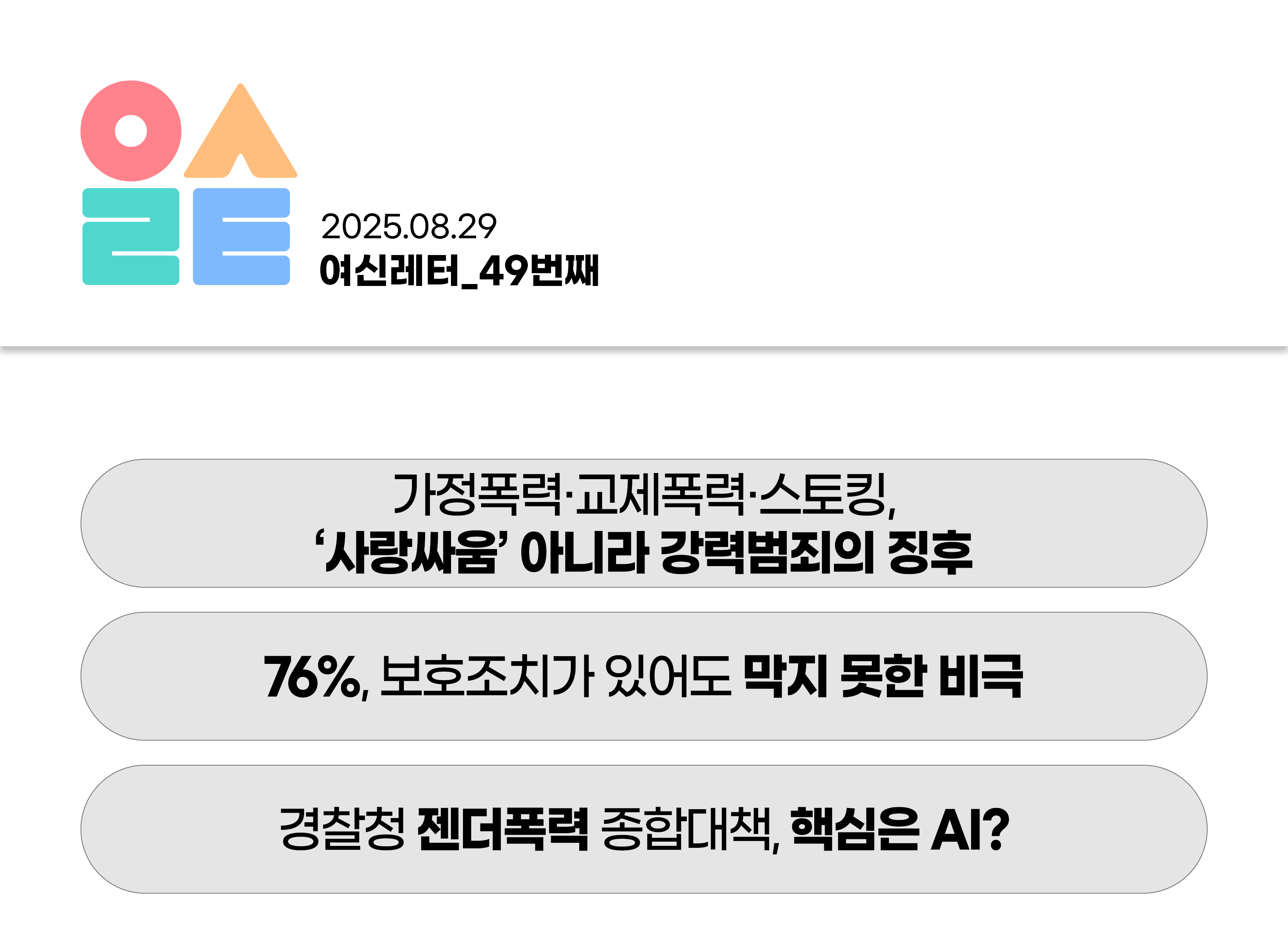 ์ฌ์ฑํญ๋ ฅ์ ๋ โ์ฌ์ํ ํญ๋ ฅโ ๋์ ์ ๋ฐ์ ์์ต๋๋ค. ๊ฐํด์๋ค์ ํ์๋ฅผ ํ๋์ฉ ๋ผ์ด ๋๊ณ ๋ณด๋ฉด ์ฌ๊ฐํ ๋ฒ์ฃ์ฒ๋ผ ๋ณด์ด์ง ์์ต๋๋ค. โ์ฌ๋์ธ์โ, โ๋จ์ ์ง์ ๋ฌธ์ โ๋ผ๋ ๊ณ ์ ๊ด๋