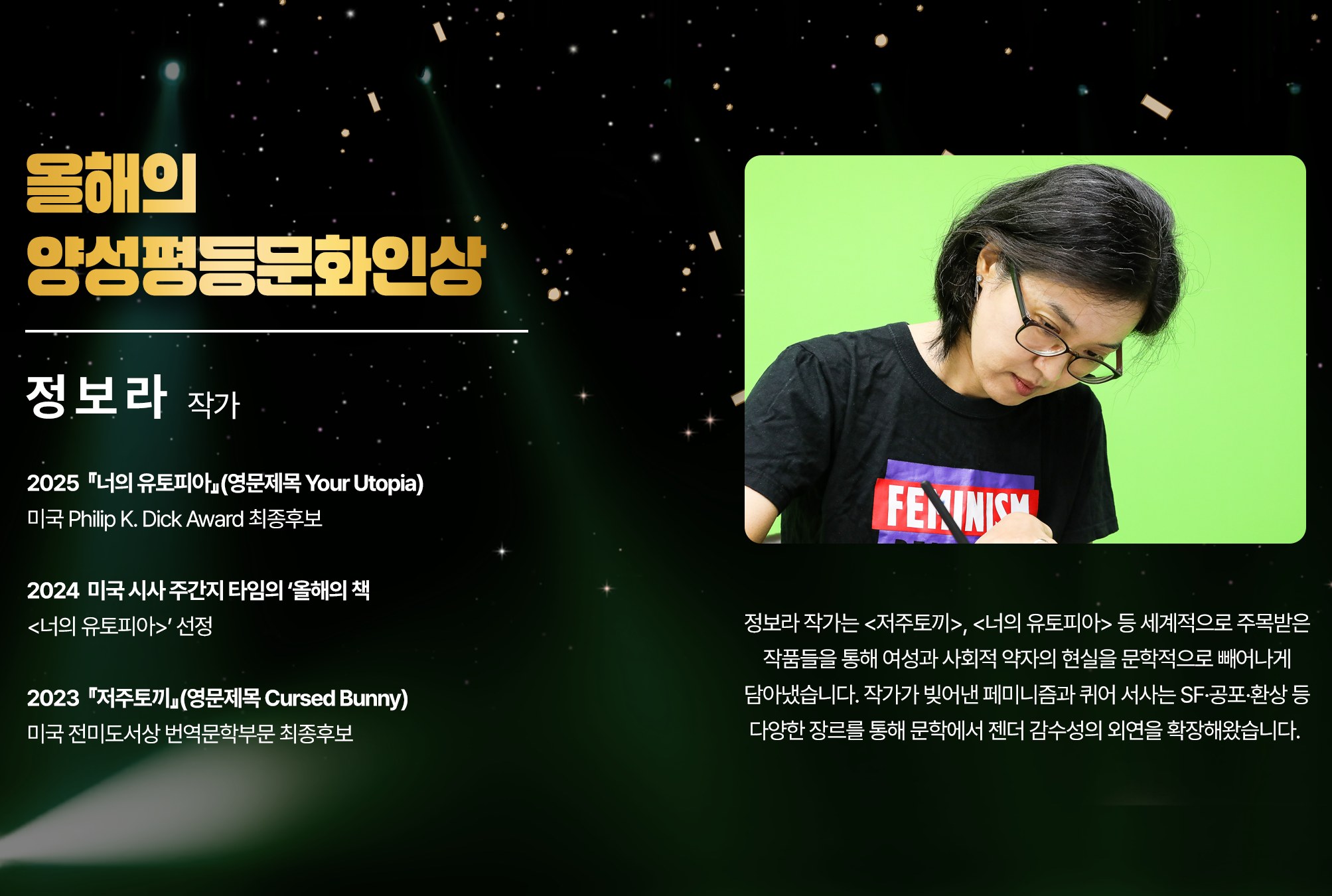์๋ชจ์์ ์ฐธ์ฌํ๊ณ , ใํ๊ตญ ์ฌ์ฑ๋ฌธํ ์ ์งใ์ ํผ์ณ๋ณด๋ ๊ฒ. ์ดํฅ๋์ด ์ถ์ฐํ ๋๋ผ๋ง๋ฅผ ์ฑ๊ฒจ๋ณด๊ณ , ๊น๊ทธ๋์ ์นํฐ์ ์๋ง์ ํจ๊ป ๋ณด๋ ๋ถ๋ค์ด ๋ ๋ง์์ง๋ฉด ์ข๊ฒ ์ต๋๋ค. โ๋ฐฑ๋์โ๋ฅผ ๋ซ๊ณ ์์ผ๋ก 20๋