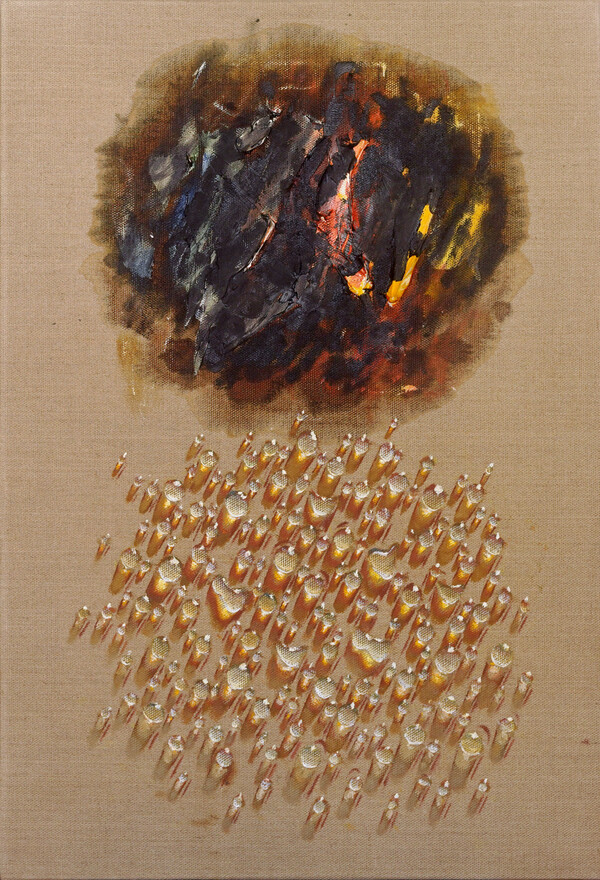 ๊น์ฐฝ์ด, ๋ฌผ๋ฐฉ์ธ, 1971, ์บ๋ฒ์ค์ ์ํฌ๋ฆด๋ฆญ ๋ฌผ๊ฐ, 50x50cm. ๊ฐ์ธ ์์ฅ. โ๊ตญ๋ฆฝํ๋๋ฏธ์ ๊ด